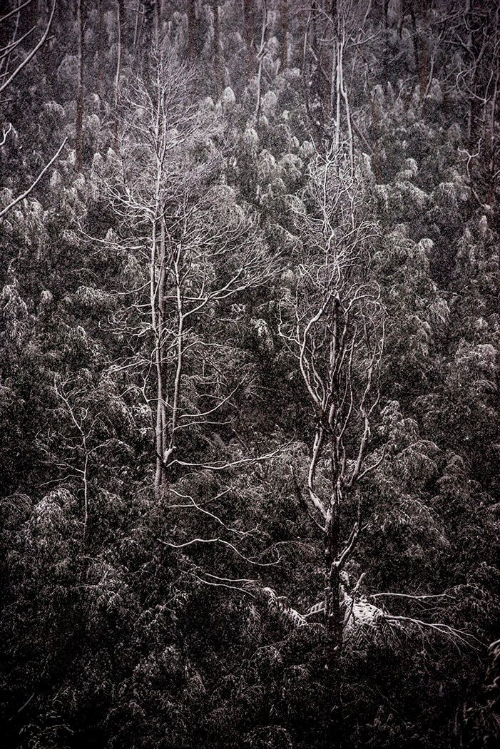 Close bunch of dead trunks, Mount Buffalo, VIC.